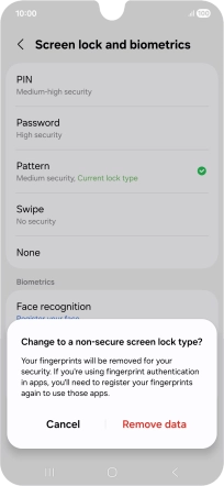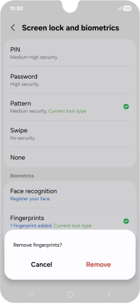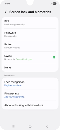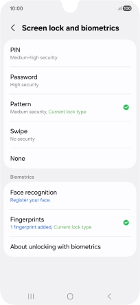 Press Screen lock and biometrics and key in the additional phone lock code you created earlier.