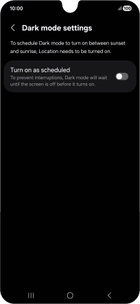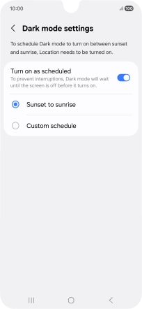 If you select Custom schedule, follow the instructions on the screen to select the required period of time for dark mode.