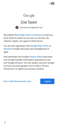 Press I agree and follow the instructions on the screen to select settings for your Google account.