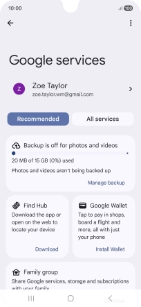 Back up the memory on your Samsung Galaxy A17 5G Android 15 to Google One