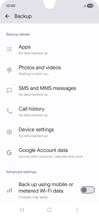 Press the indicator next to "Back up using mobile or metered Wi-Fi data" to turn the function on or off.
