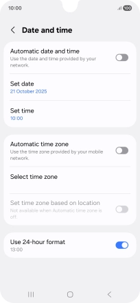 Press the indicator next to "Automatic date and time" to turn on the function.