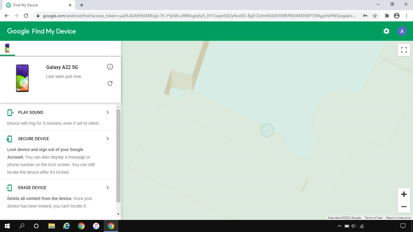 Your phone's latest position is displayed on the map.
