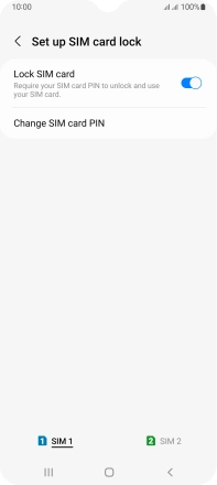 Press the indicator next to "Lock SIM card" to turn the function on or off.
