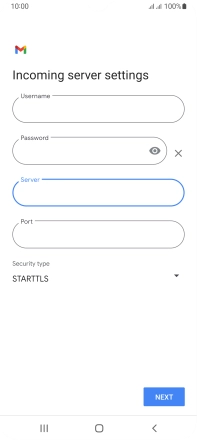 Press the field below "Server" and key in the name of your email provider's incoming server.
