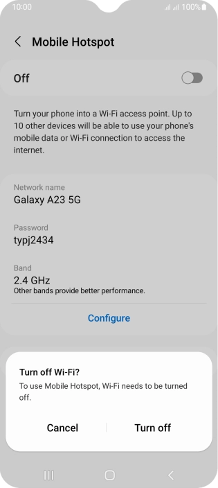 I can't use my Samsung Galaxy A23 5G Android 12.0 as a Wi-Fi hotspot