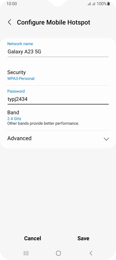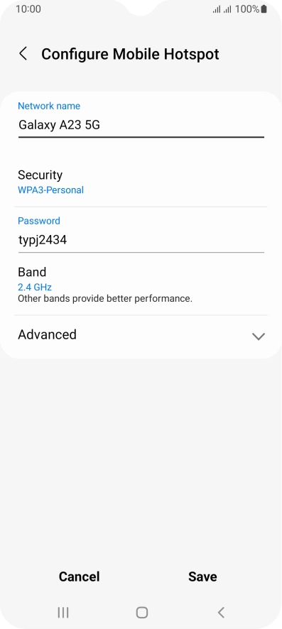 Press WPA3-Personal to password protect your Wi-Fi hotspot.