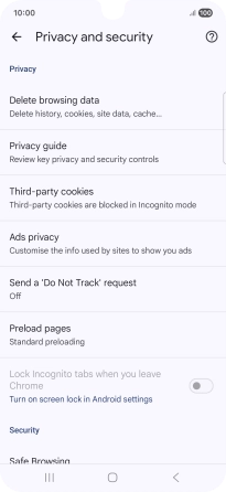 Press Privacy and security.