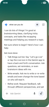 Say "What can you do?" to see more examples of voice control commands from Gemini.