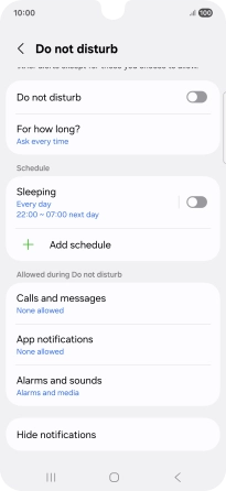 Press Add schedule and follow the instructions on the screen to select settings for automatic activation of Do Not Disturb.