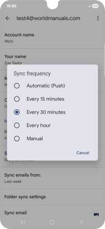 8. Select setting for retrieval of new email messages