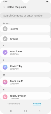 Press the search field and key in the first letters of the recipient's name.