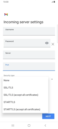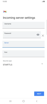 Press the field below "Server" and key in the name of your email provider's incoming server.