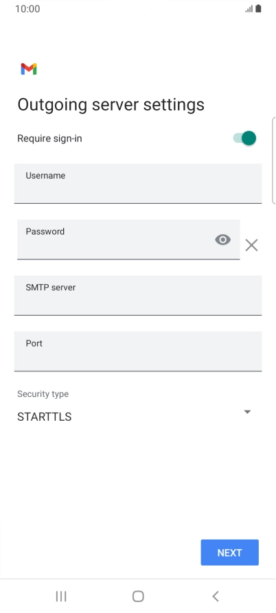 Press the field below "Username" and key in the username for your email the email provider's outgoing server.