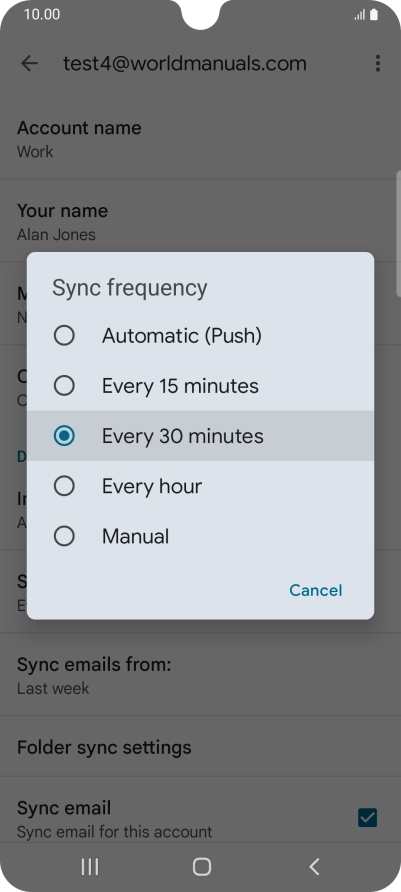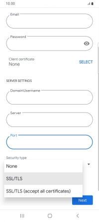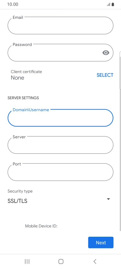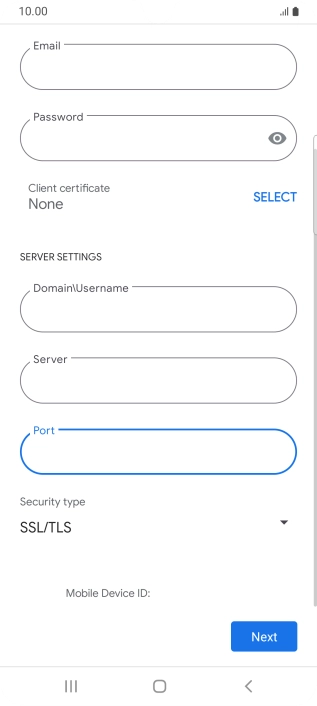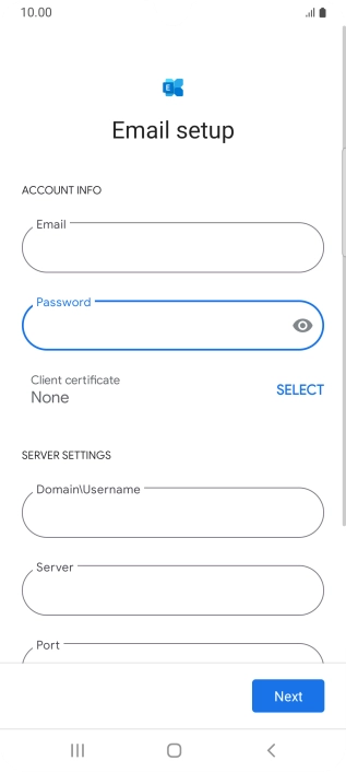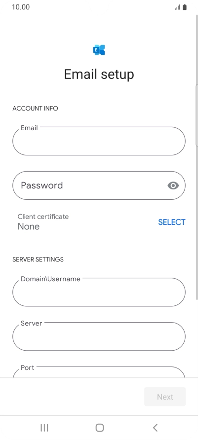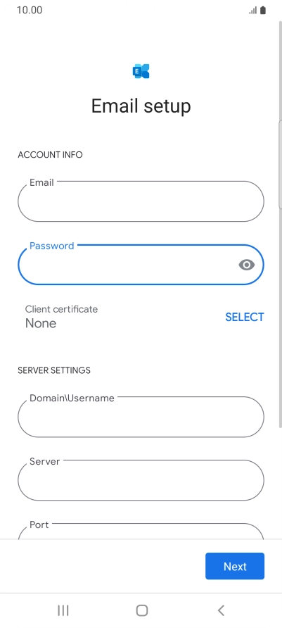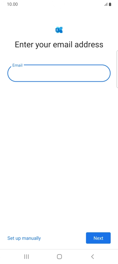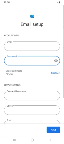 If this screen is displayed, your email account has been recognised and is being set up automatically. Follow the instructions on the screen to key in more information and finish setting up your phone.