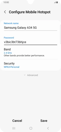 Press WPA3-Personal to password protect your Wi-Fi hotspot.