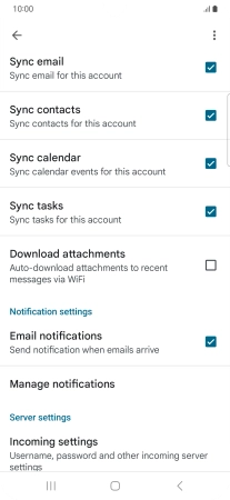 9. Turn on email message synchronisation