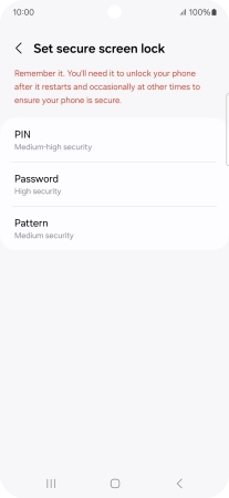 Press Screen lock type and key in the additional phone lock code you created earlier.