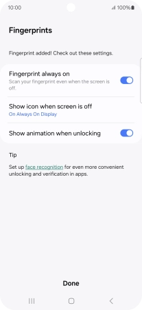 Follow the instructions on the screen to create the phone lock code using your fingerprint.