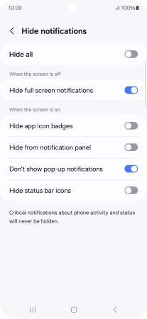 Press the indicators next to the required settings to turn display of the selected notification types on or off.