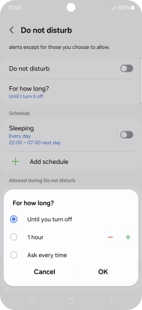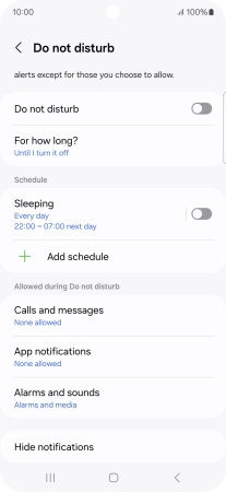 Press Add schedule and follow the instructions on the screen to select settings for automatic activation of Do Not Disturb.