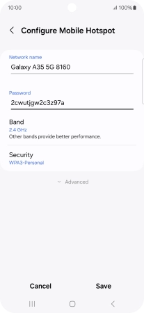 Press WPA3-Personal to password protect your Wi-Fi hotspot.