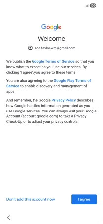 Press I agree and follow the instructions on the screen to select settings for your Google account.