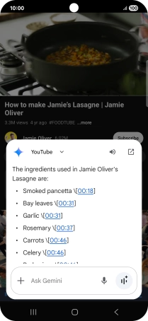 Using Gemini, you can ask questions about the content of a YouTube video.