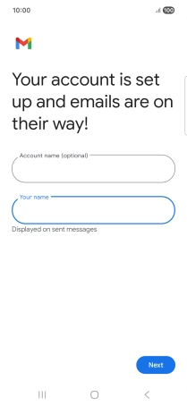 If this screen is displayed, you email account has been recognised and set up automatically. Follow the instructions on the screen to key in more information and finish setting up your phone.