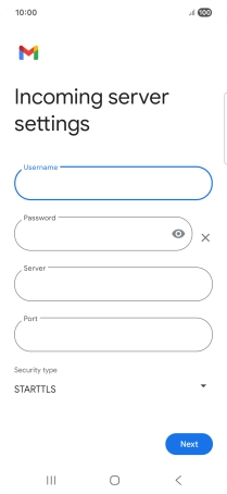 Press the field below "Server" and key in the name of your email provider's incoming server.