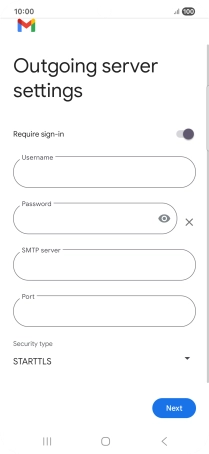 Press the field below "SMTP server" and key in the name of your email provider's outgoing server.