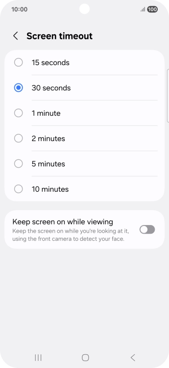 Press Screen timeout.
