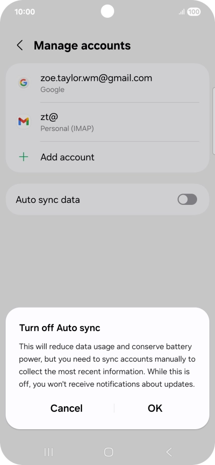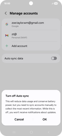 Press the indicator next to "Auto sync data" to turn the function on or off.