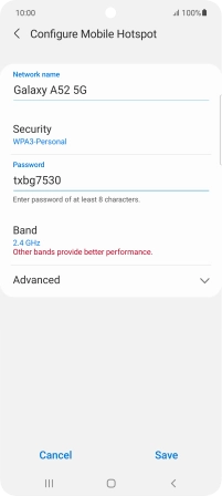 Press WPA3-Personal to password protect your Wi-Fi hotspot.