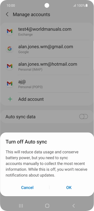 Press the indicator next to "Auto sync data" to turn the function on or off.