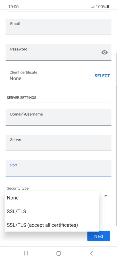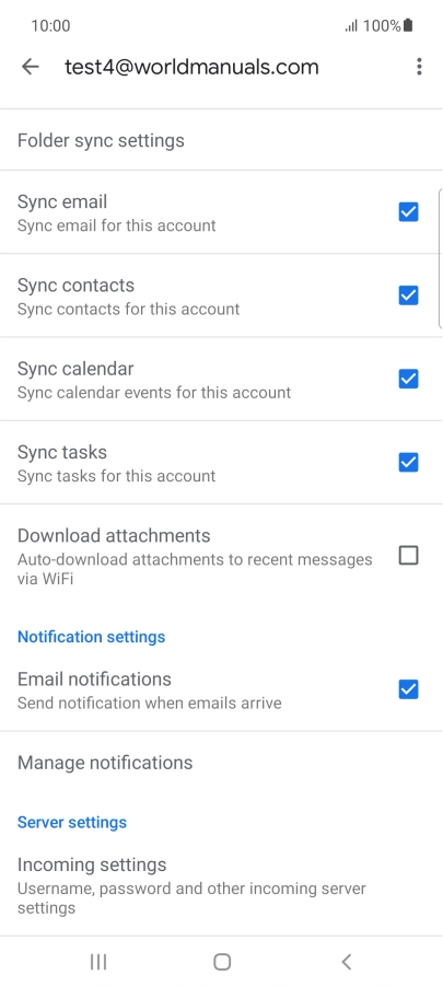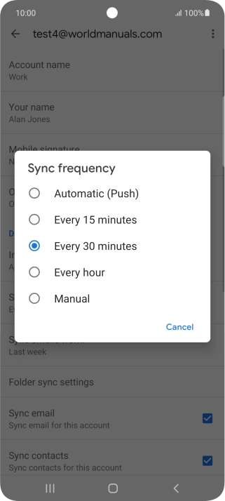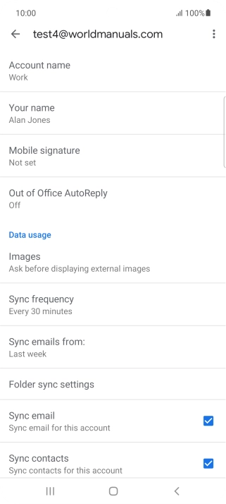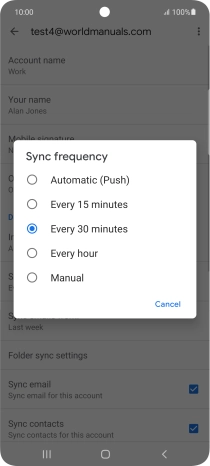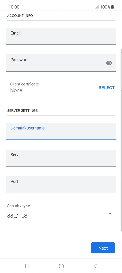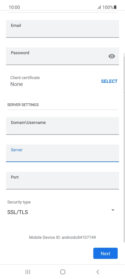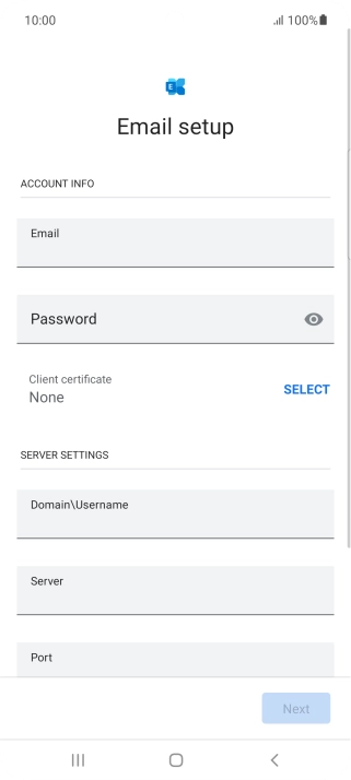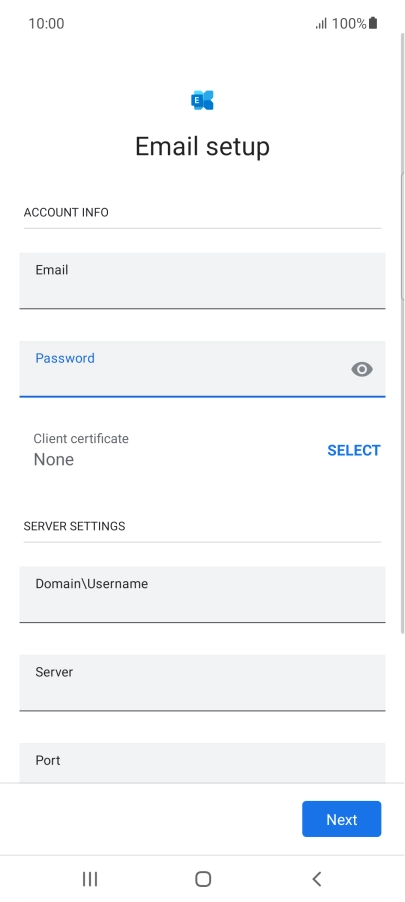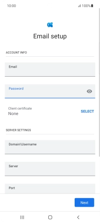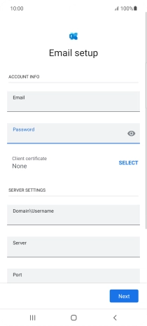 If this screen is displayed, your email account has been recognised and is being set up automatically. Follow the instructions on the screen to key in more information and finish setting up your phone.