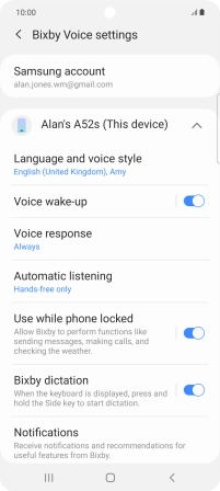 Select voice control settings on your Samsung Galaxy A52s 5G Android 11.0