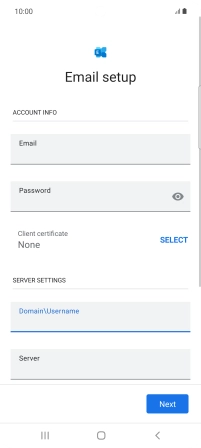 If this screen is displayed, your email account has been recognised and is being set up automatically. Follow the instructions on the screen to key in more information and finish setting up your phone.