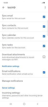 Press the field next to "Sync email" to turn on the function.