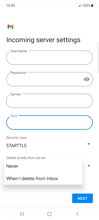 Press the field below "Server" and key in the name of your email provider's incoming server.