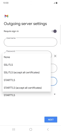 Press the field below "Username" and key in the username for your email the email provider's outgoing server.