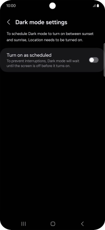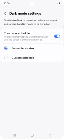If you select Custom schedule, follow the instructions on the screen to select the required period of time for dark mode.
