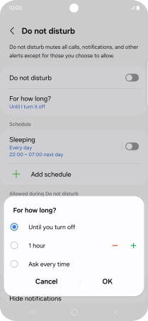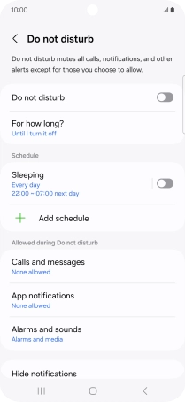Press Add schedule and follow the instructions on the screen to select settings for automatic activation of Do Not Disturb.