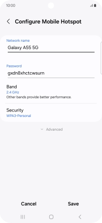 Press WPA3-Personal to password protect your Wi-Fi hotspot.