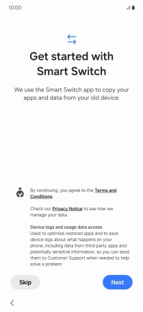 Press the required setting and follow the instructions on the screen to transfer the content from another phone.