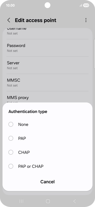 Press Authentication type.