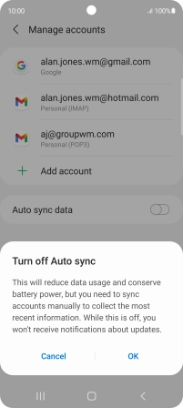 Press the indicator next to "Auto sync data" to turn the function on or off.