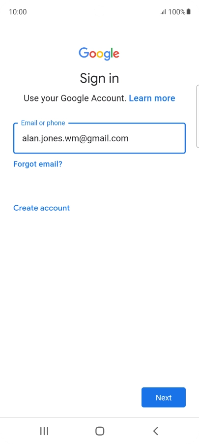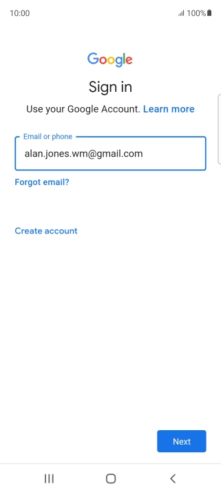 If you don't have a Google account, press Create account and follow the instructions on the screen to create an account.