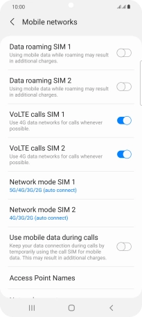 Press the indicator next to "Data roaming ‹SIM›" to turn the function on or off.
