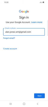 If you don't have a Google account, press Create account and follow the instructions on the screen to create an account.